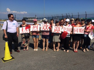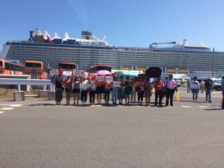 2015.8.15 超大型豪華客船クァンタムオブザシーズが五日市港に寄港、総会が同胞の来広を歓迎