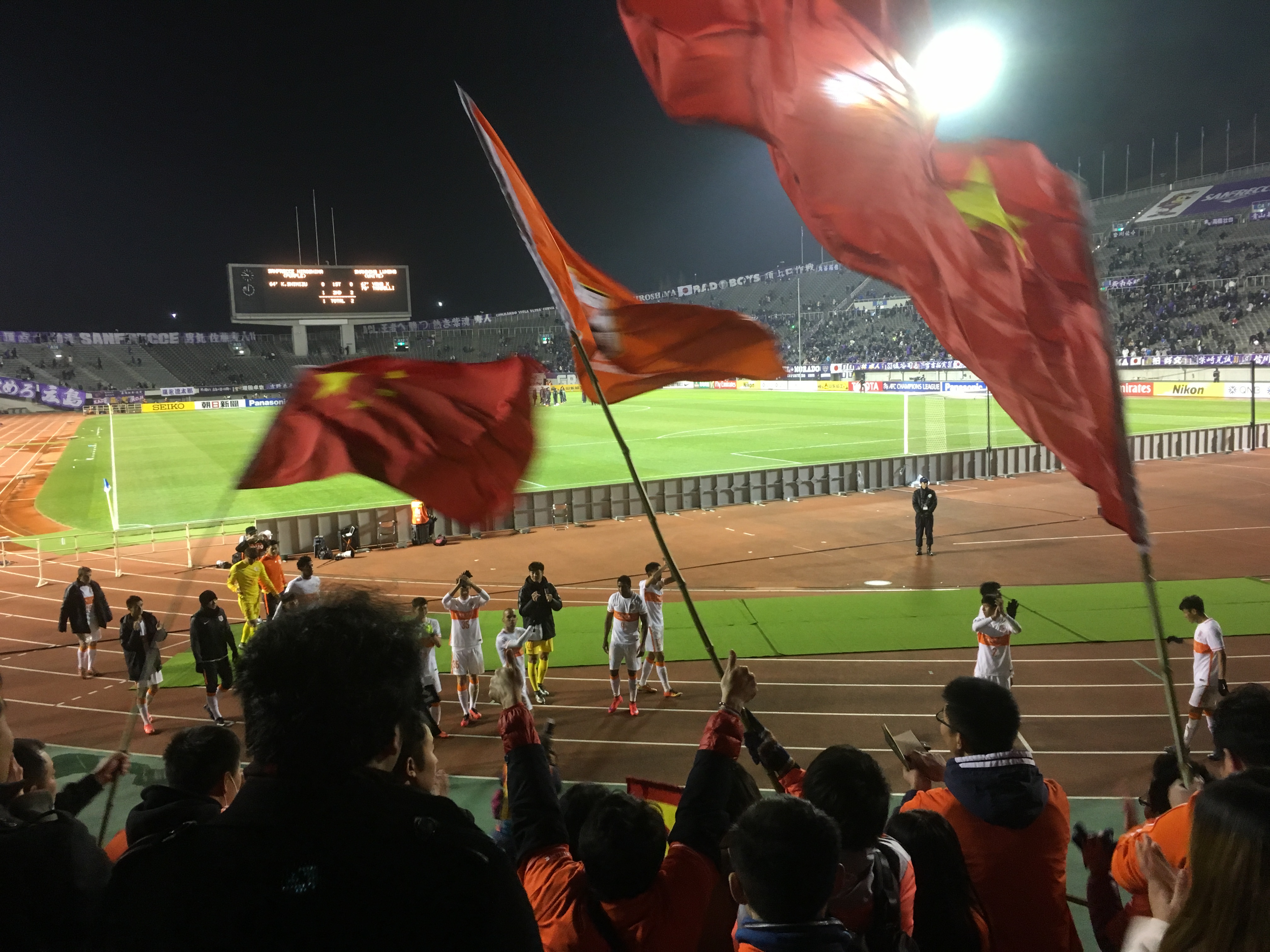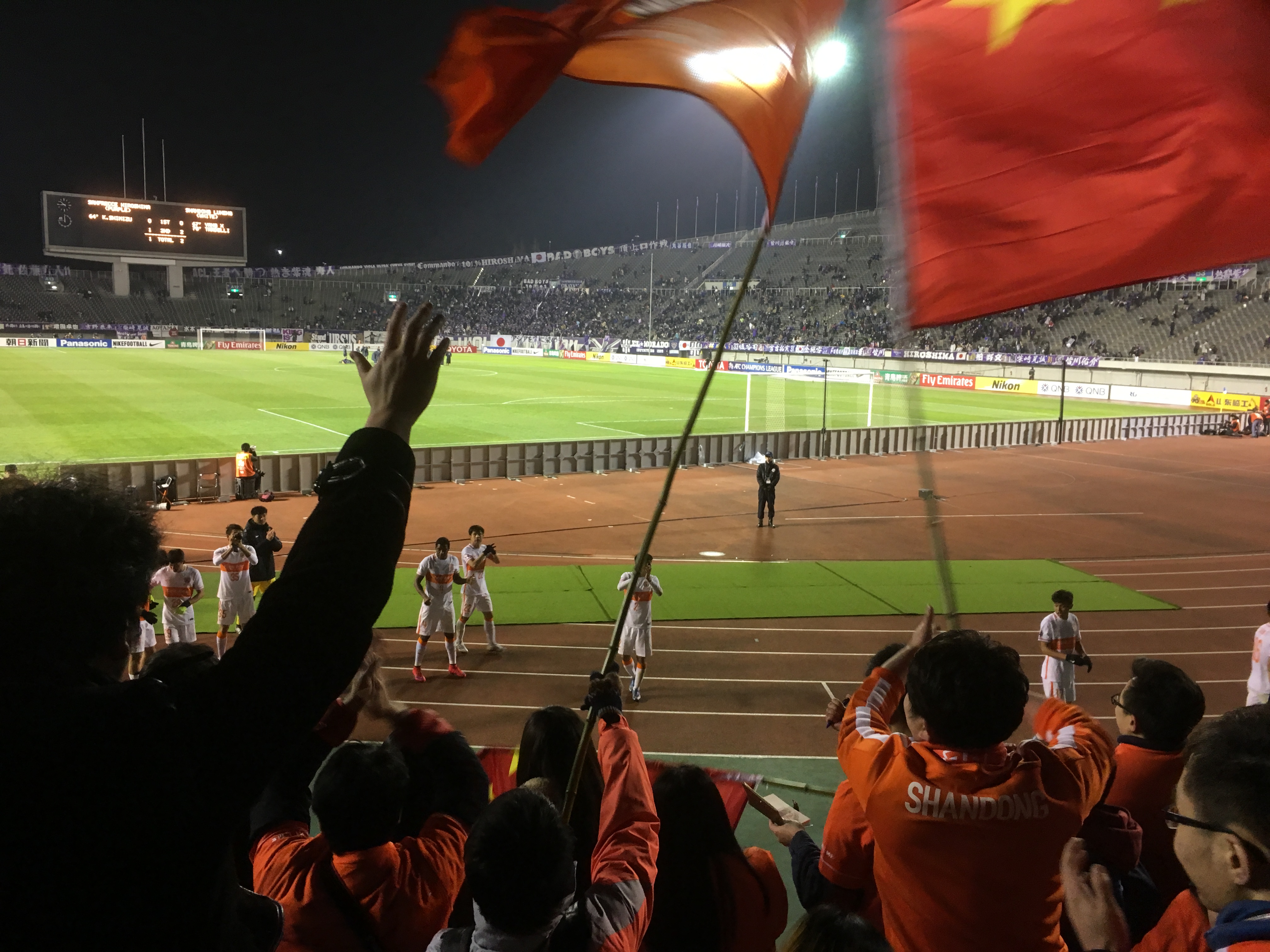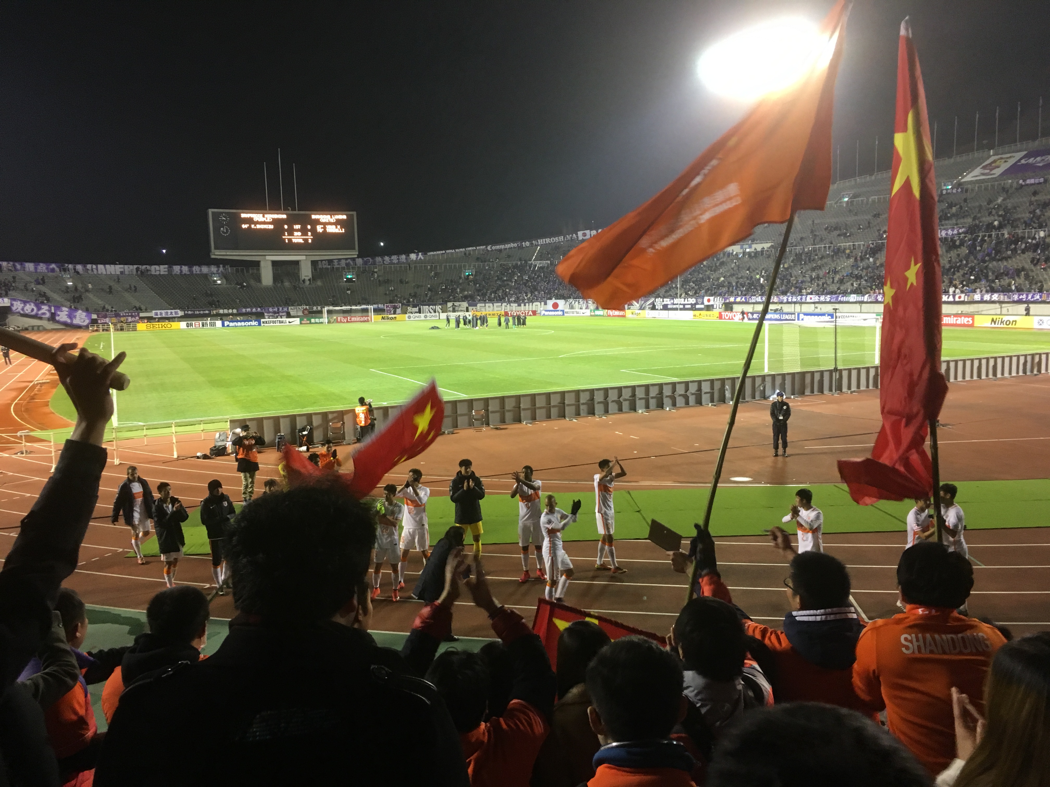 2016.2.23 2016赛季亚冠联赛日本赛区山东鲁能客场对战广岛三箭 总会为山东鲁能呐喊助威(広島)